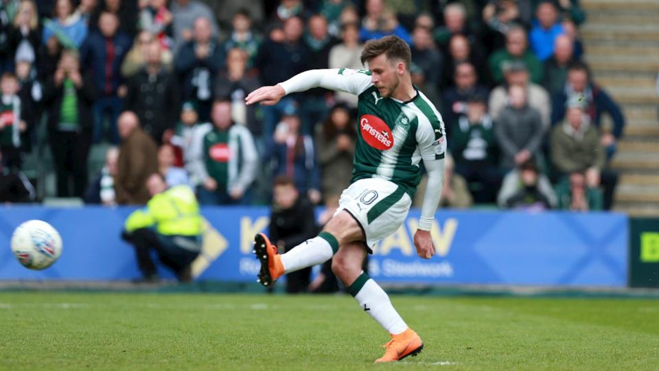 Argyle remained two points behind Scunthorpe who currently occupy the final play off place, with the two teams meeting on Tuesday night, in their penultimate fixture. When Argyle won the penalty late in the game, with Carey being felled by Will Vaulks, there was only one man to take it.