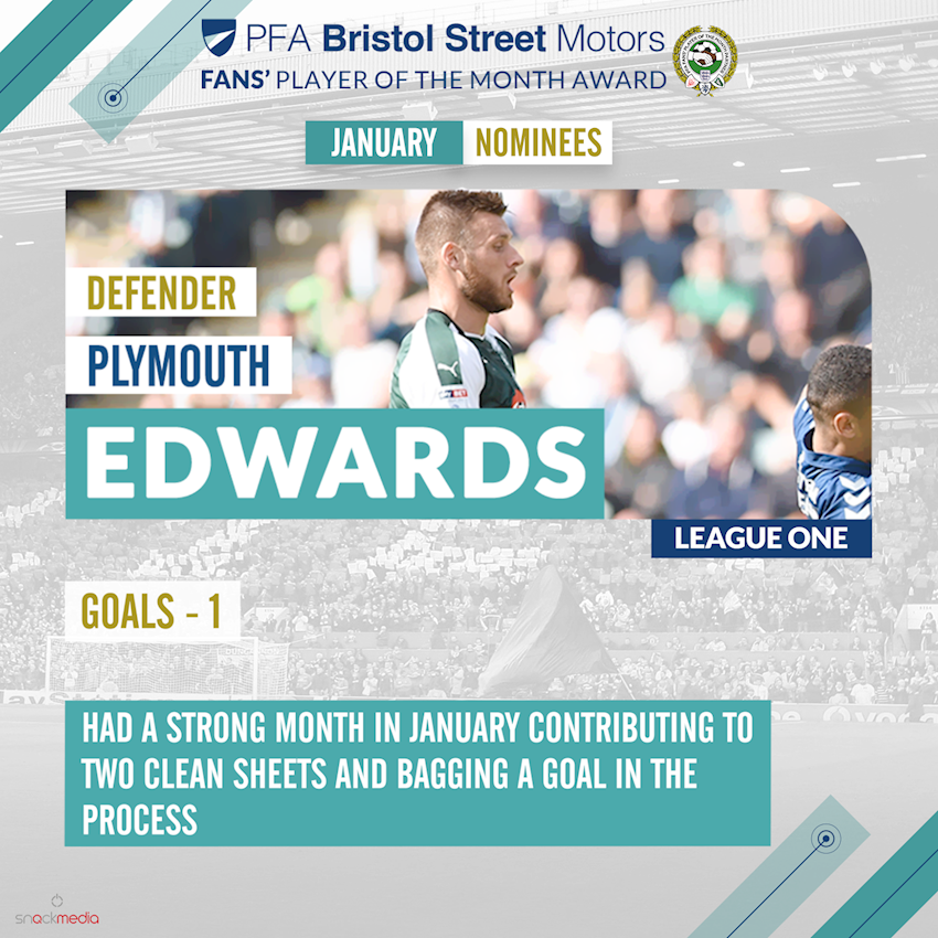 RYAN Edwards has been nominated for PFA Bristol Street Motors EFL League One Player of the Month for January.