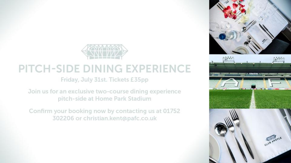 Pitch-Side Dining at Home Park Hospitality & Events Pitch-Side Dining at Home Park Monday, 6 July, 2020