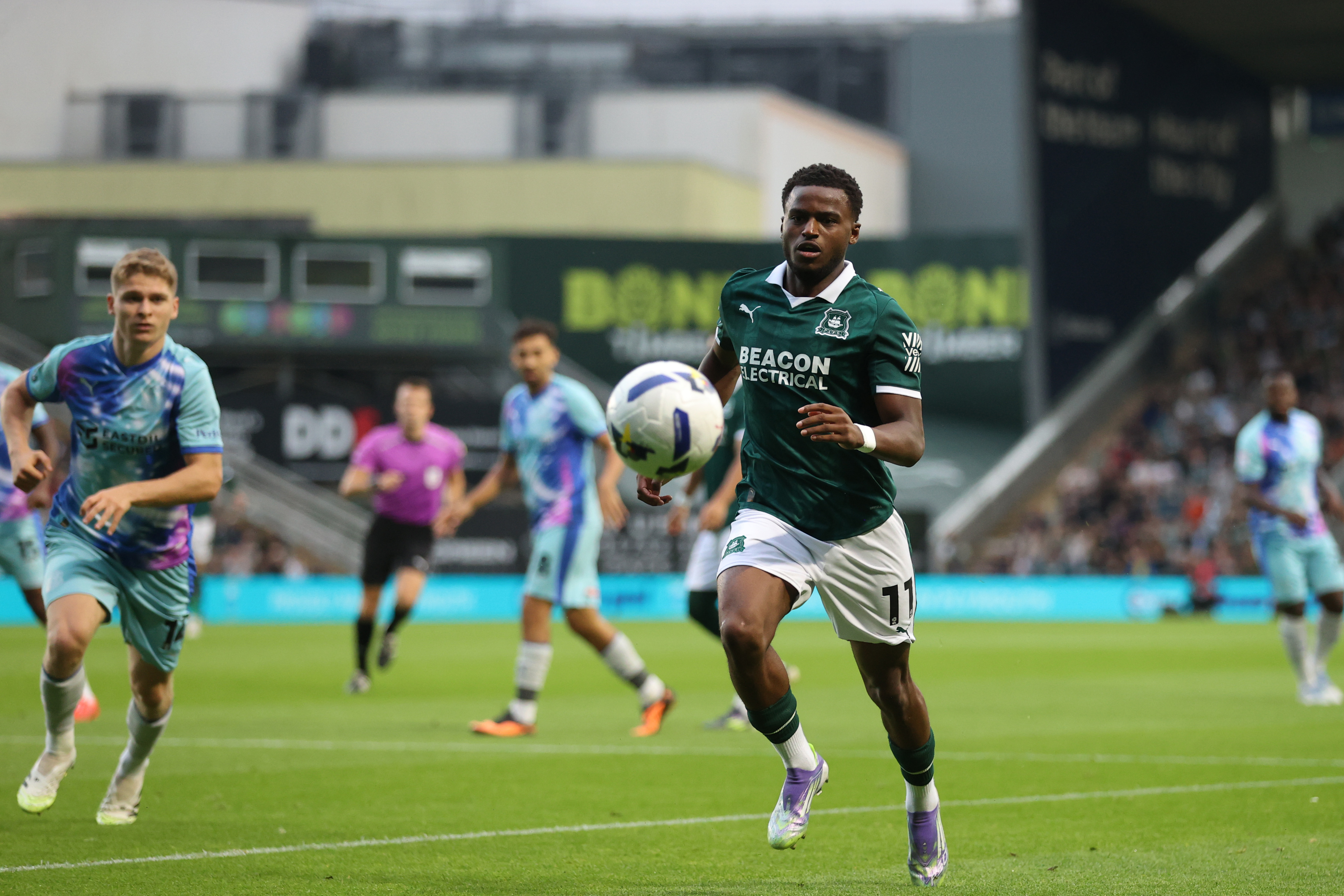 Having spent a very successful season at Home Park, own loan from Norwich City, Bali Mumba rejoined Argyle in the summer of 2023, this time on a permanent basis, equally the club's transfer record.